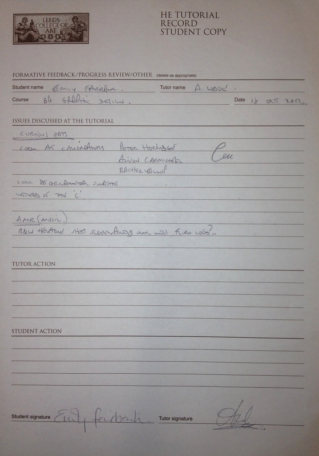 I had my first individual tutorial with Andy this afternoon to give feedback on the work I had done on Curious Eats and Alternate Music Room briefs. Overall it was good, for the curious eats logo he felt that the 'C of curious eats looks too separate from the rest of word so I need to carry on developing it and re-position the C so that I can do this. He also said to try and make the points of the C finer at the end to mirror the S.